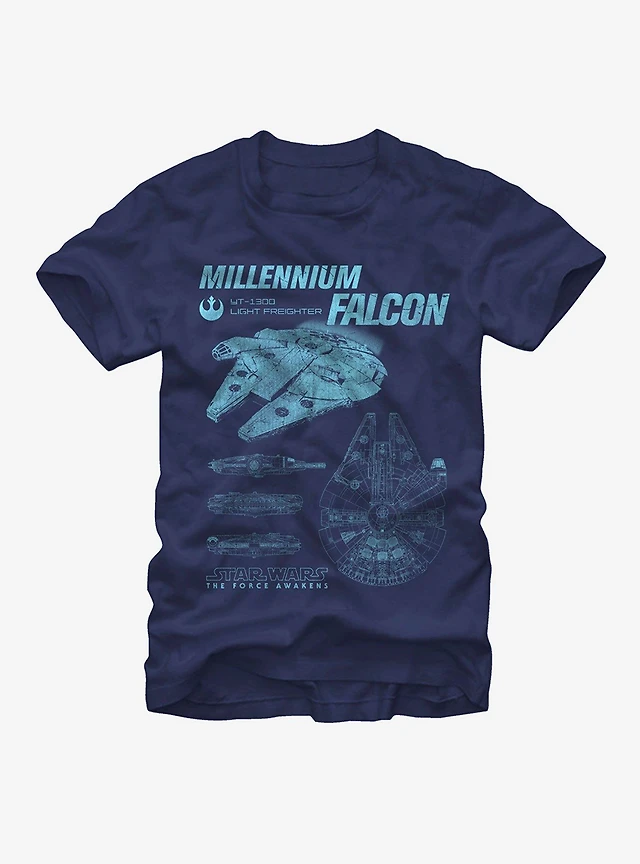 Star Wars The Force Awakens Millennium Falcon Blueprints T-Shirt