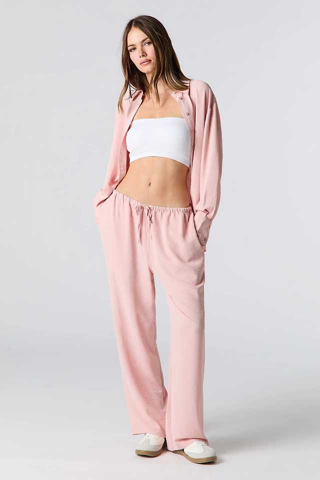 Crinkle Drawstring Wide Leg Pant