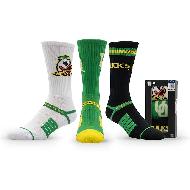 Unisex Strideline Oregon Ducks Premium Knit Crew Socks Three-Pack