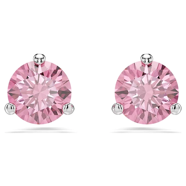 Solitaire stud earrings, Round cut, Pink, Rhodium plated by SWAROVSKI