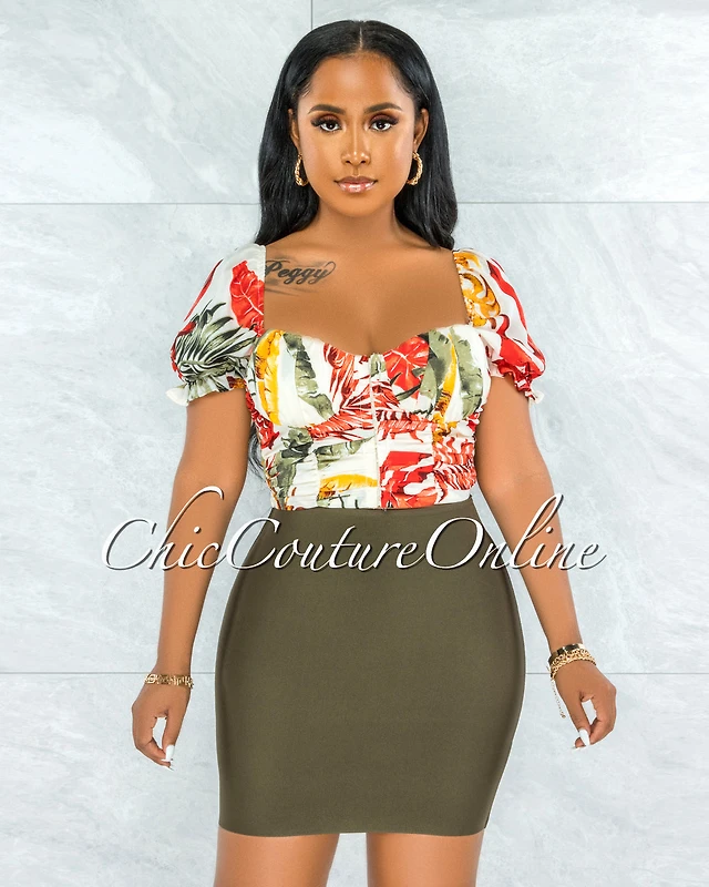 *Dathan Nude Floral Print Eyelet Ruched Two Piece Set