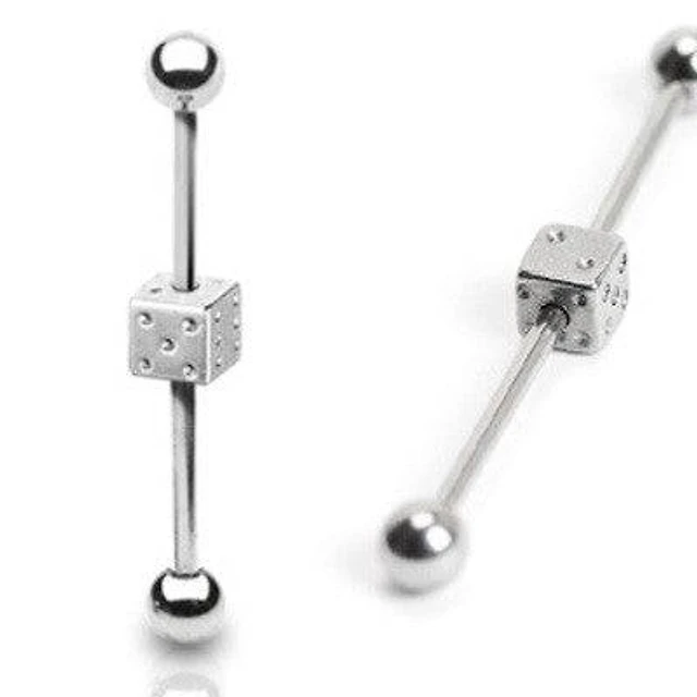 Surgical Steel Dice Centre Straight Barbell Industrial Ring