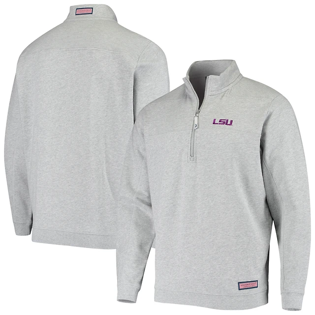 Men's Vineyard Vines Heather Gray LSU Tigers Team Shep Shirt Quarter-Zip Sweatshirt