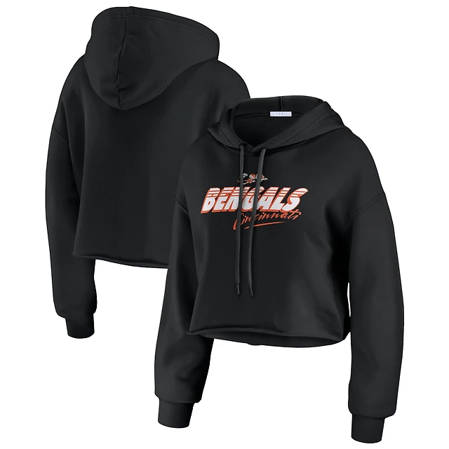 Women's WEAR by Erin Andrews Black Cincinnati Bengals Prime Cropped Pullover Hoodie