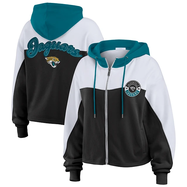 Women's WEAR by Erin Andrews Black/White Jacksonville Jaguars Color Block Full-Zip Hoodie
