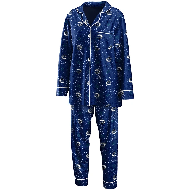 Women's WEAR by Erin Andrews Royal Vancouver Canucks Long Sleeve Button-Up Shirt & Pants - Sleep Set