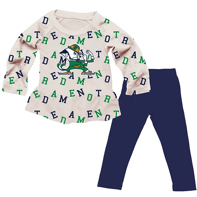Girls Infant Wes & Willy Oatmeal Notre Dame Fighting Irish Ruffle Raglan Long Sleeve T-Shirt Leggings Set