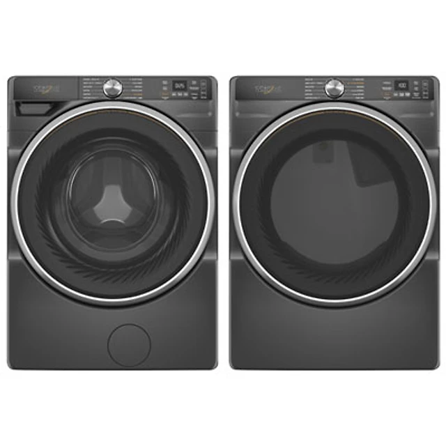 Whirlpool 7.4 Cu. Ft. Gas Steam Dryer & 4.5 Cu. Ft. Front Load Steam Washer- Volcano Black