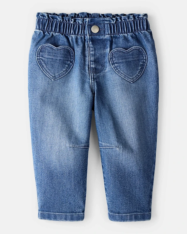 Baby Girl Heart Pocket Barrel Jeans - Blue