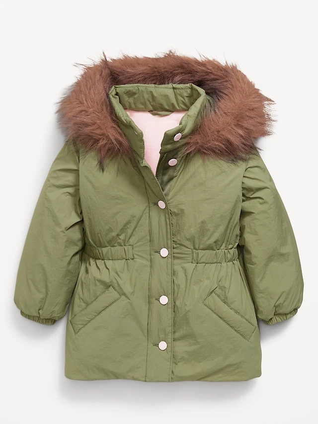 Water-Resistant Faux-Fur Hooded Parka Jacket for Toddler Girls