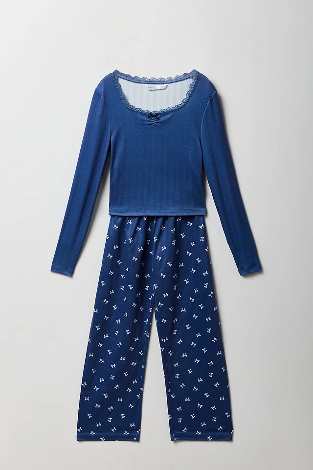 Girls Button-Up Top & Pant 2 Piece Pajama Set