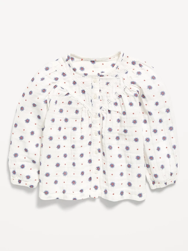 Fitted Long-Sleeve Lace-Trim Top for Girls