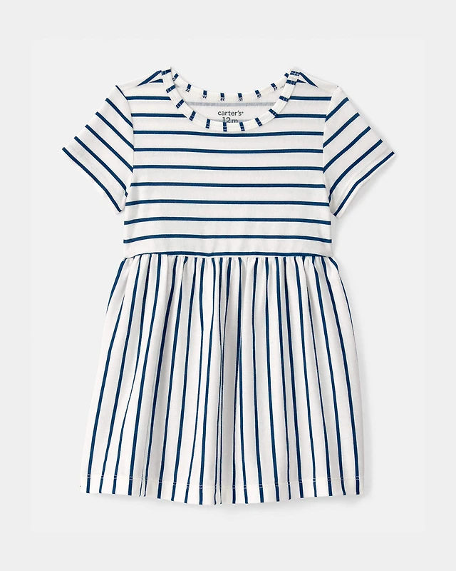 Baby Girl Striped Short-Sleeve Dress - Blue/Ivory
