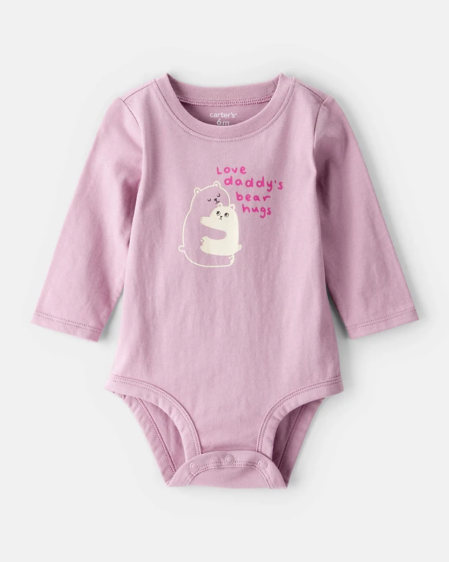 Baby Girl Bear Hugs Long-Sleeve Graphic Bodysuit - Pink