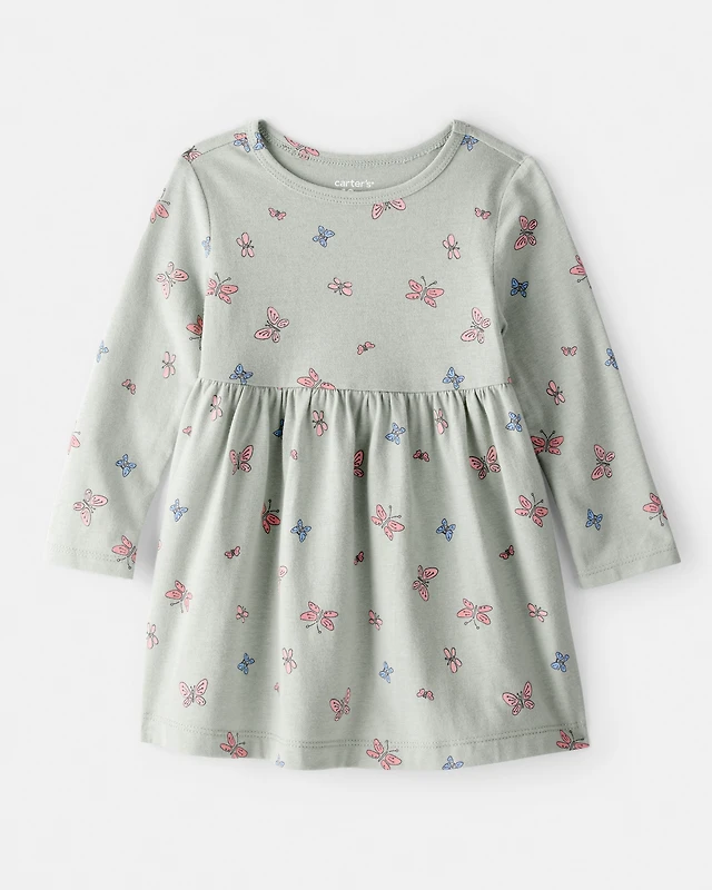 Baby Girl Butterfly Long-Sleeve Knit Dress - Green