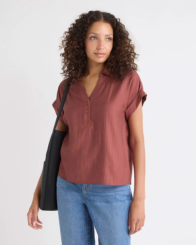 Canada Weather Gear Butterfly Pattern Henley Pajama Top - Pink
