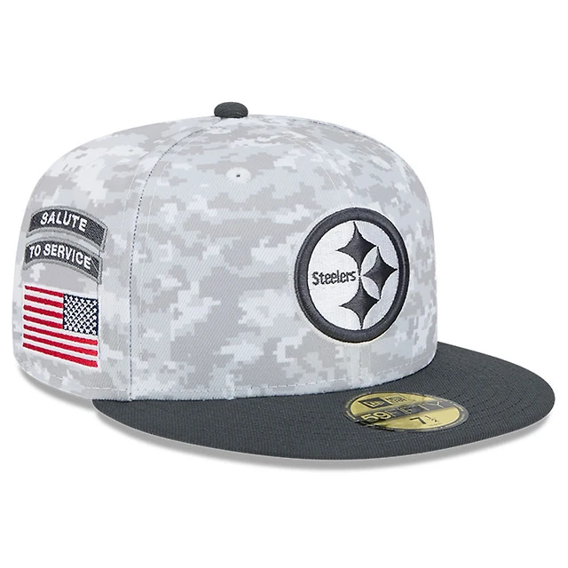 Youth New Era White/Graphite Cincinnati Bengals 2024 Salute To Service Cuffed Pom Knit Hat