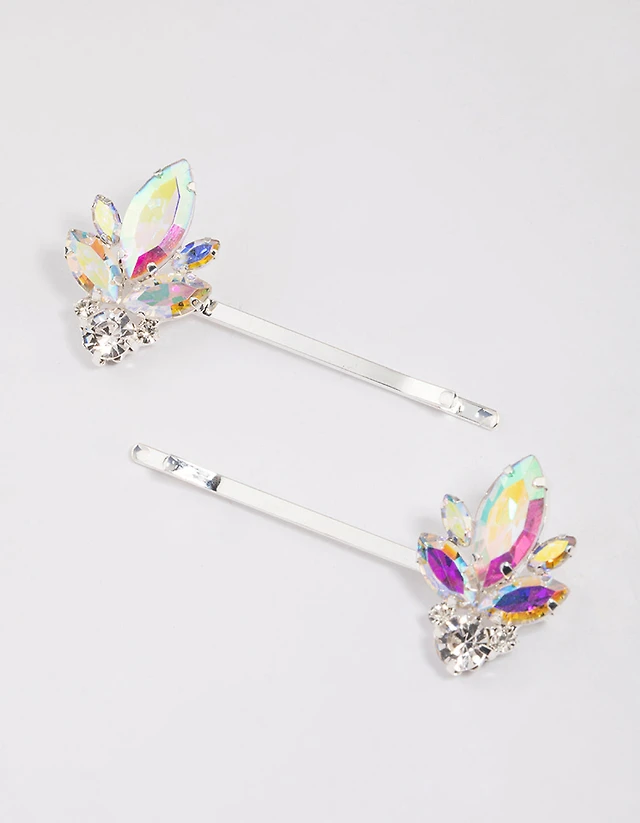 Rainbow Mini Diamante Flower Hair Clip 4-Pack