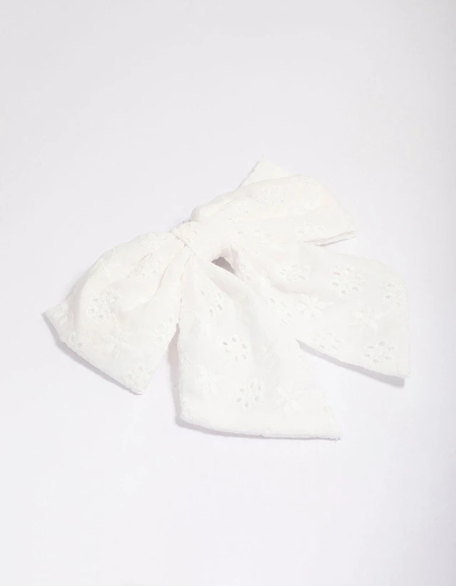 Cream Mini Fabric Bow Tie Hair Clips 2-Pack