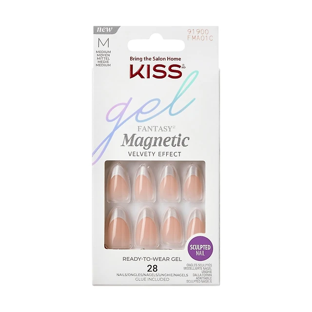 Kiss Gel Fantasy Magnetic Press-On Nails, "North Coast", Silver, Medium Almond, 31 Count