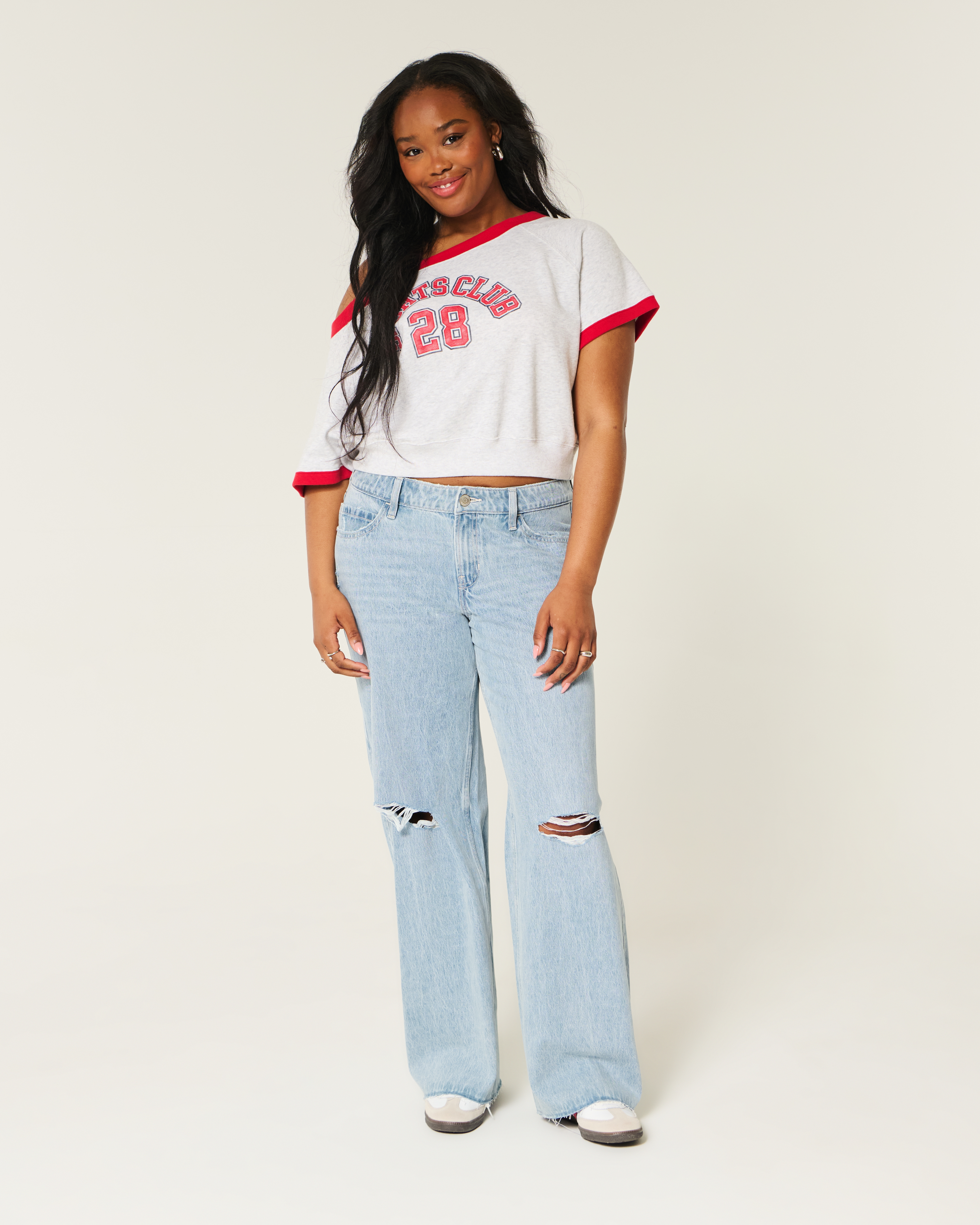 Curvy Low-Rise Ripped Light Wash Baggy Jeans