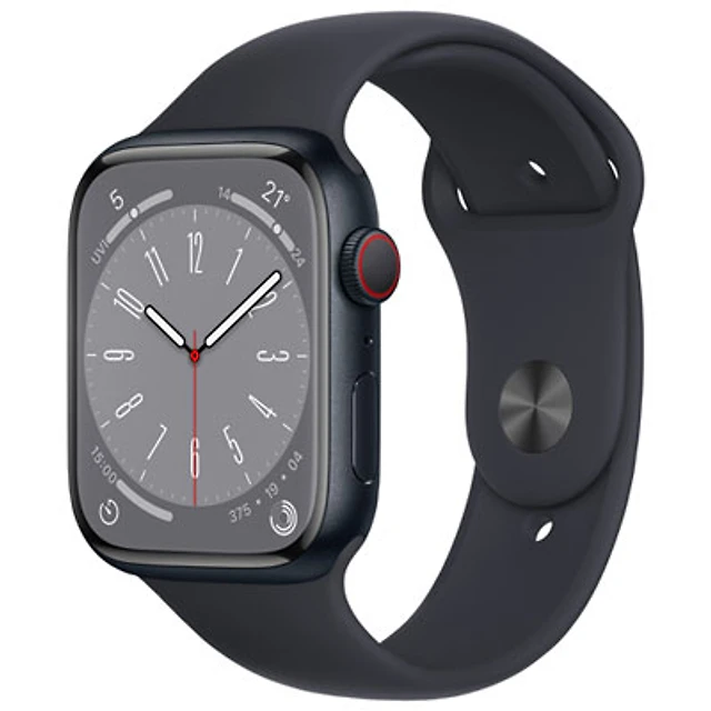 Bell Apple Watch Series 8 (GPS + Cellular) 45mm Silver Aluminum Case w/ White Sport Band - M/L - Monthly Financing