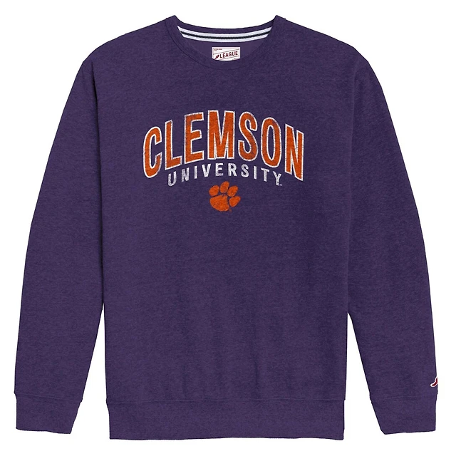Men's League Collegiate Wear Heather Purple Clemson Tigers Heritage Tri-Blend Pullover Sweatshirt