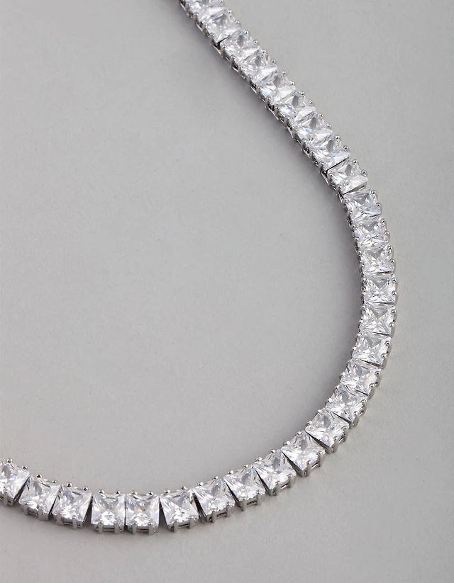Silver Cubic Zirconia Statement Square Necklace