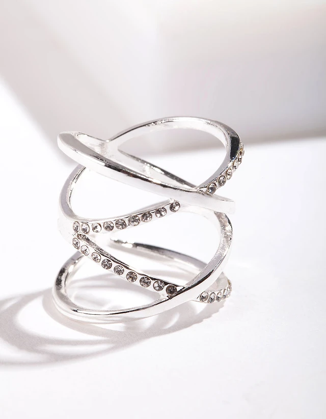 Silver Diamante Double Cross Ring