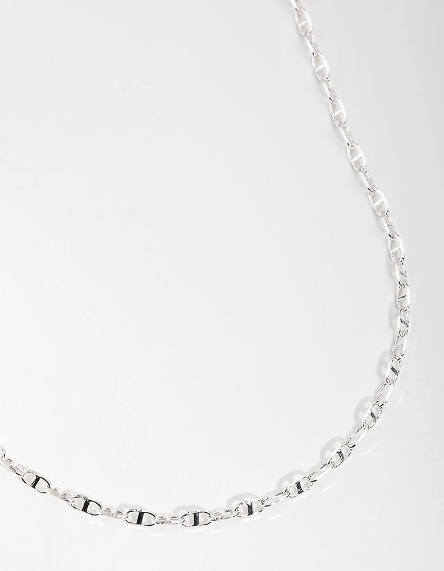 Silver Plated Brass Flat Curb Chain Necklace