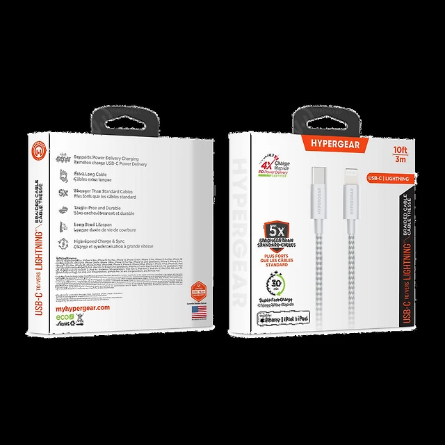 HyperGear 10 ft. (300cm) USB-C to Lightning Braided Charge and Sync Cable - White