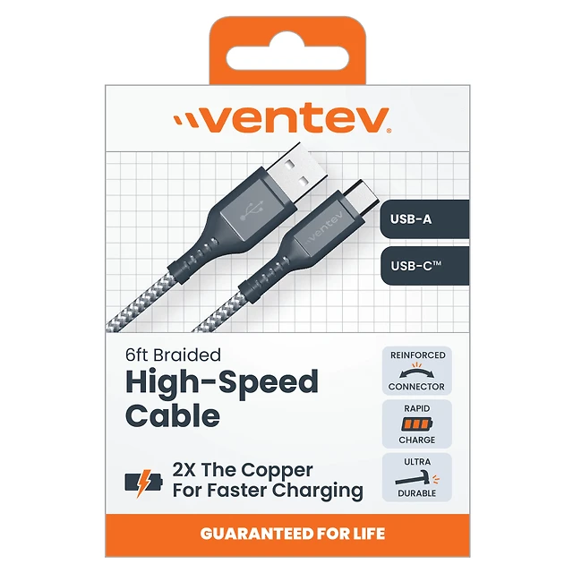 Insignia 1.8m (5.9 ft.) Braided USB-C to USB-A Cable (NS-MCA6CAB2-C) - 2 Pack - Charcoal - Only at Best Buy