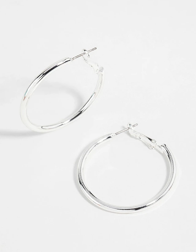 Silver Plated Brass Mini Cubic Zirconia & Plain Huggie Earrings 2-Pack