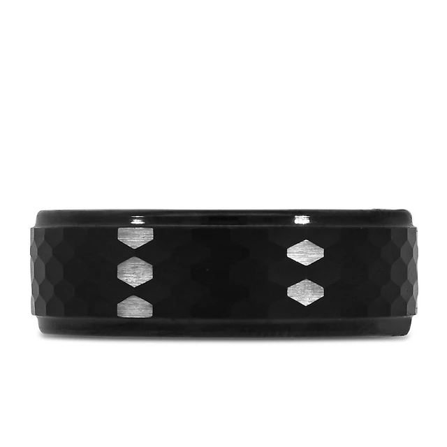 8MM Black Textured Comfort Fit Wedding Band in Tungsten