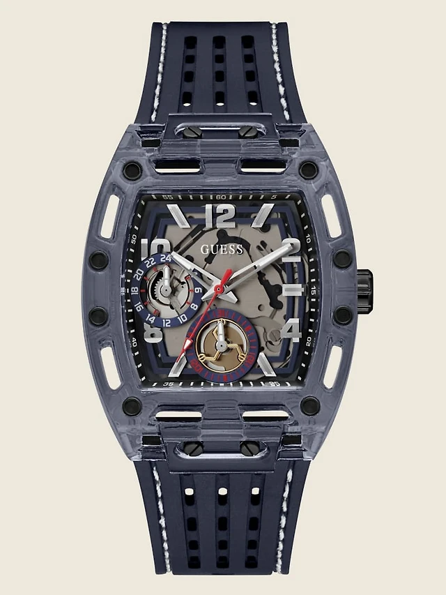 Rose Gold-Tone and Navy Silicone Multifunction Watch