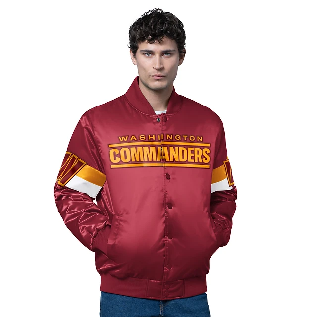 Men's Starter Burgundy Washington Commanders Triple Option Satin Varsity Full-Snap Jacket