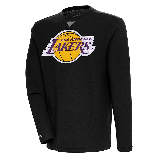 Men's Antigua Black Los Angeles Lakers Flier Bunker Pullover Sweatshirt