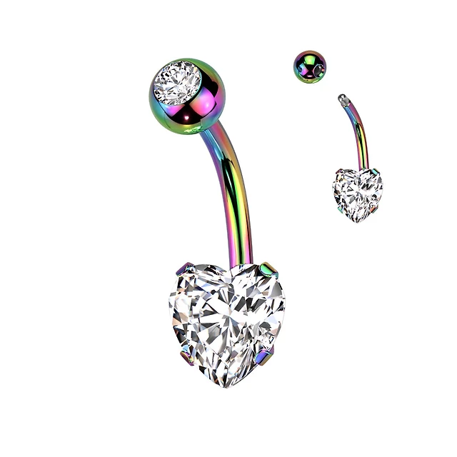 316L Surgical Steel Rainbow PVD White CZ Heart Shaped Non Dangle Belly Ring