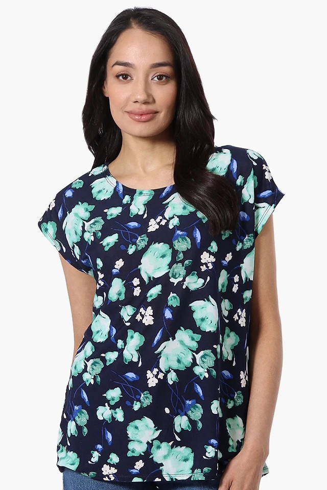 Floral Short Sleeve Crossover Jumpsuit - Navy