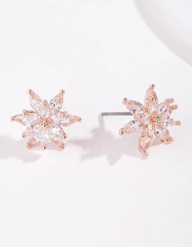 Rose Gold Dainty Diamante Flower Stud Earrings
