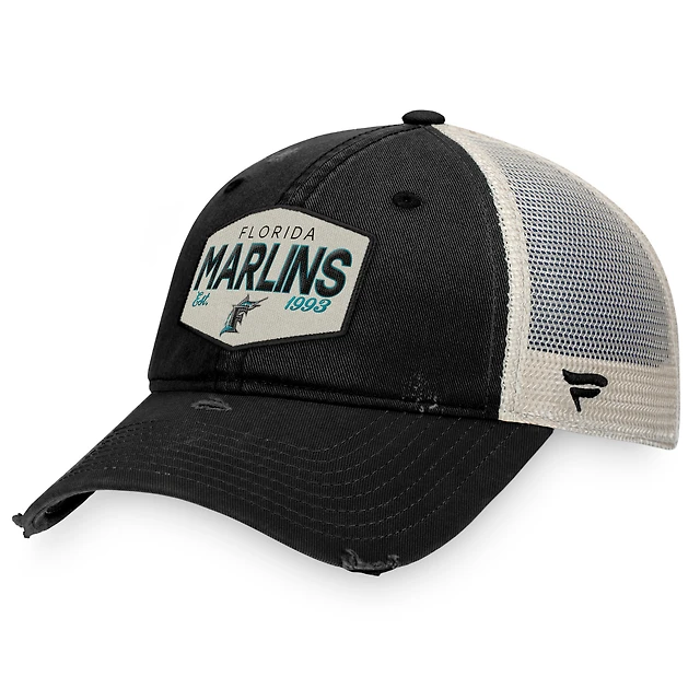 Men's Fanatics Black Florida Marlins Patch Trucker Adjustable Hat