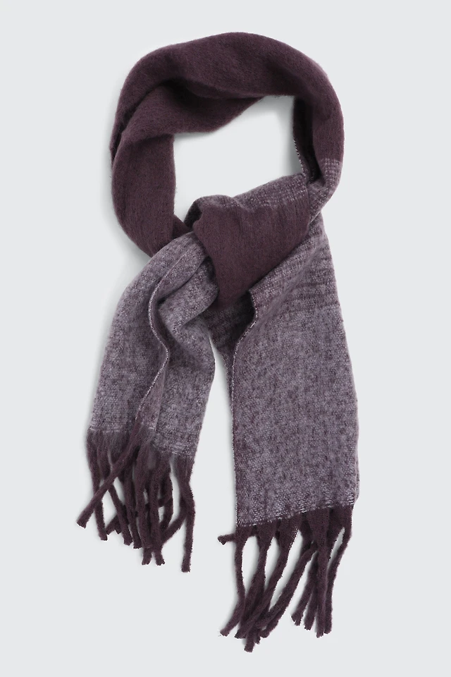 Ardene Rectangular Ombre Scarf with Fringes in Dark Purple | Polyester