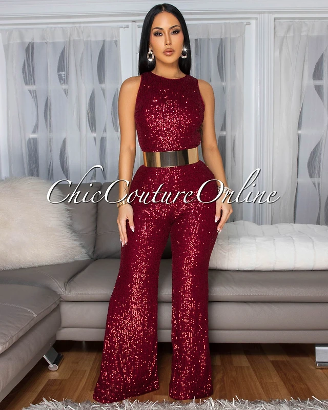 *Thorne Black Sequins Cut-Out Waist Feather Cuffs Jumpsuit