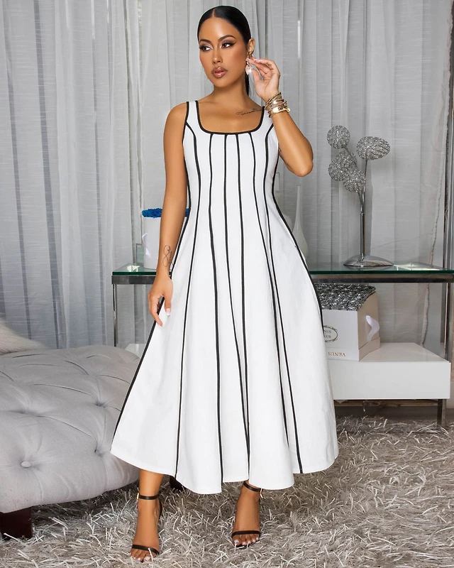 *Silvy White Nude Sleeveless Midi Dress