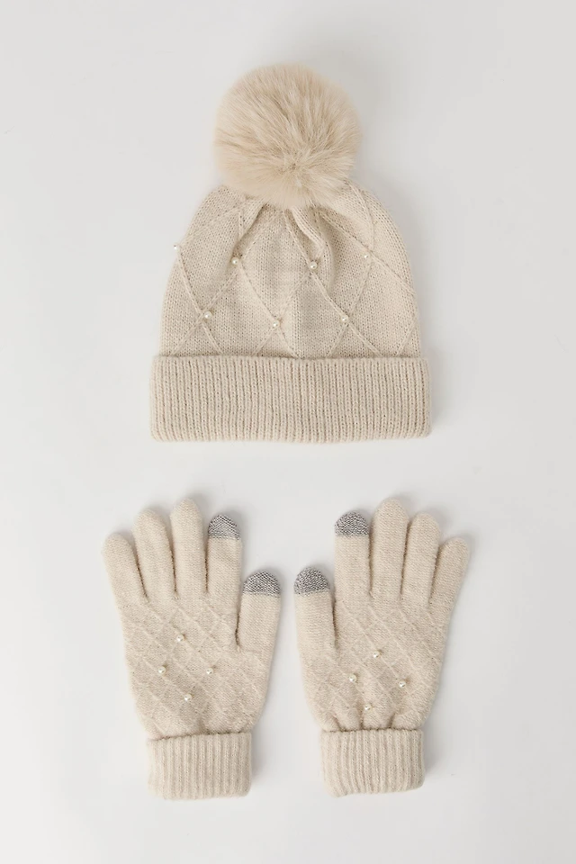 Ensemble avec chapeaux et gants ornés de similiperles (3 unités)