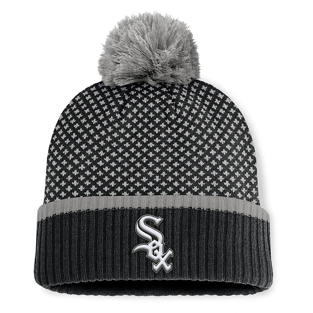 Women's Fanatics Black Chicago White Sox Fundamental Jacquard Cuffed Knit Hat with Pom
