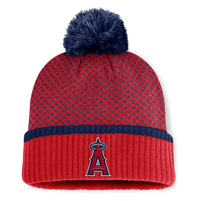 Women's Fanatics Red Los Angeles Angels Fundamental Jacquard Cuffed Knit Hat with Pom