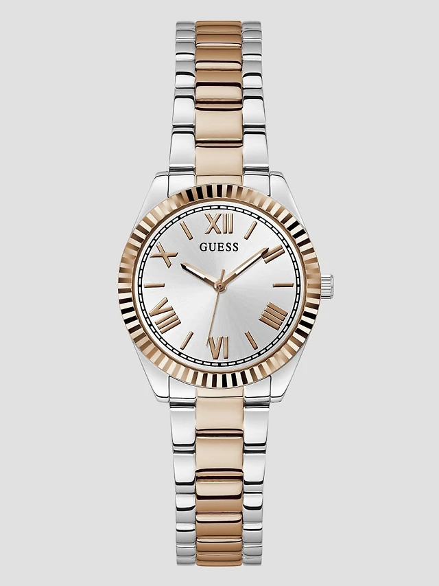 Rose Gold-Tone and Blue Silicone Multifunction Watch