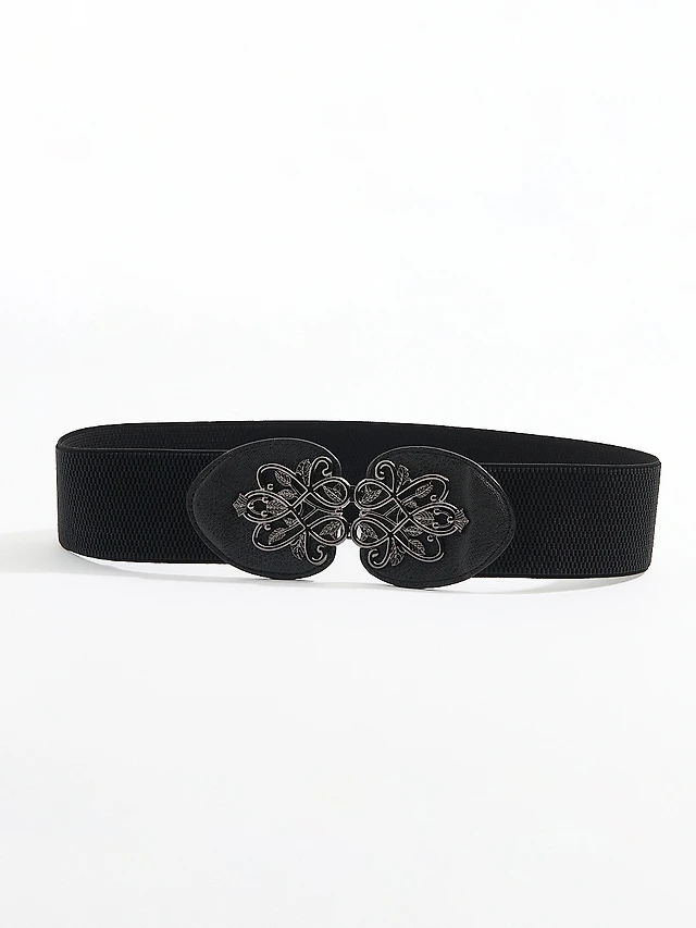 Deep Ruby Stretch Belt with Gold Bow Buckle