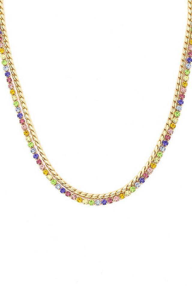 *Morra Gold Crystal Station Double Chain Necklace